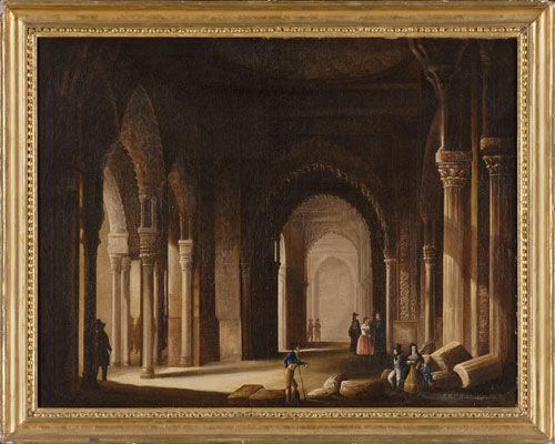 366Spanischer Meister Datiert 1843Innenansicht einer Palastruine. Signiert: M.L. Mendizabal ? Öl/Lwd., 66 x 84 cm 1500 EUR |