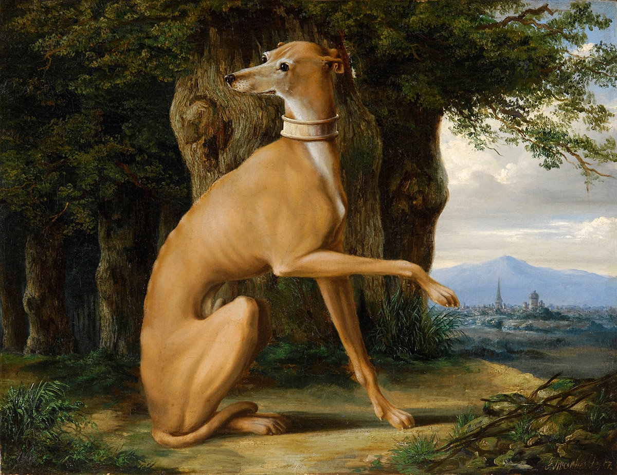 Russische Schule 19. Jhdt. Russischer Windhund. Undeutlich signiert. Öl/Lwd., 50 x 66 cm