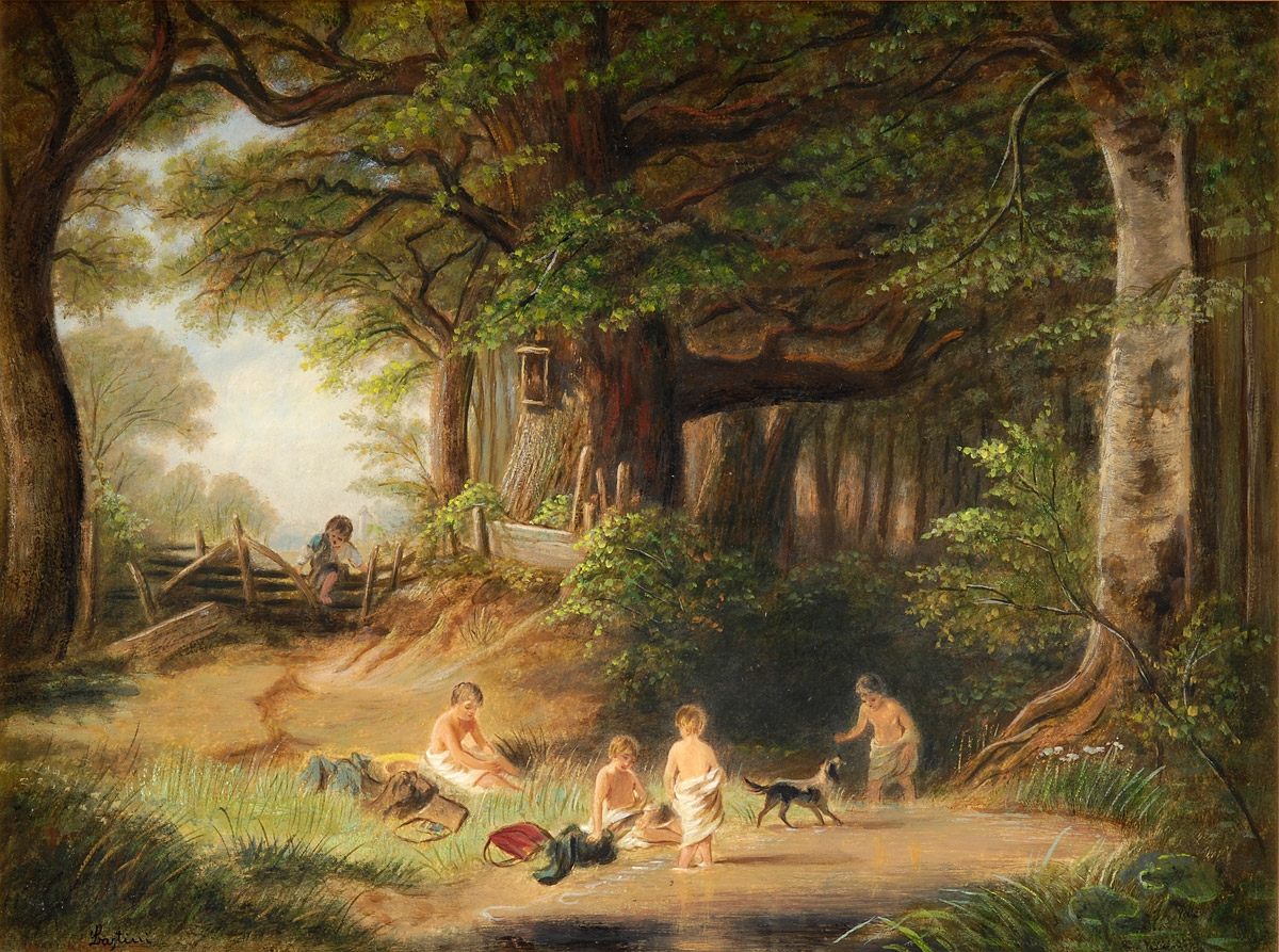 Champion, Theo 1887 Düsseldorf - 1952 Zell Sommertag auf dem Rheindamm. Signiert. Datiert 1922. Öl/Lwd., 15 x 15 cm