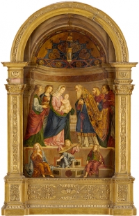 Angeli Pascoli, Marianna 1790 Montefalcone - 1844/46 Muttergottes mit Kind und anderen Heiligen. Rückseite signiert. Datiert 1833. Öl/Holz, 56 x 36 cm (mit Originalrahmen)