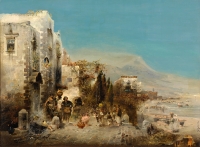 Allot, Robert 1850 Graz - 1910 Wien Reges Treiben am Strand von Neapel. Signiert. Öl/Lwd./Holz, 74 x 100 cm
