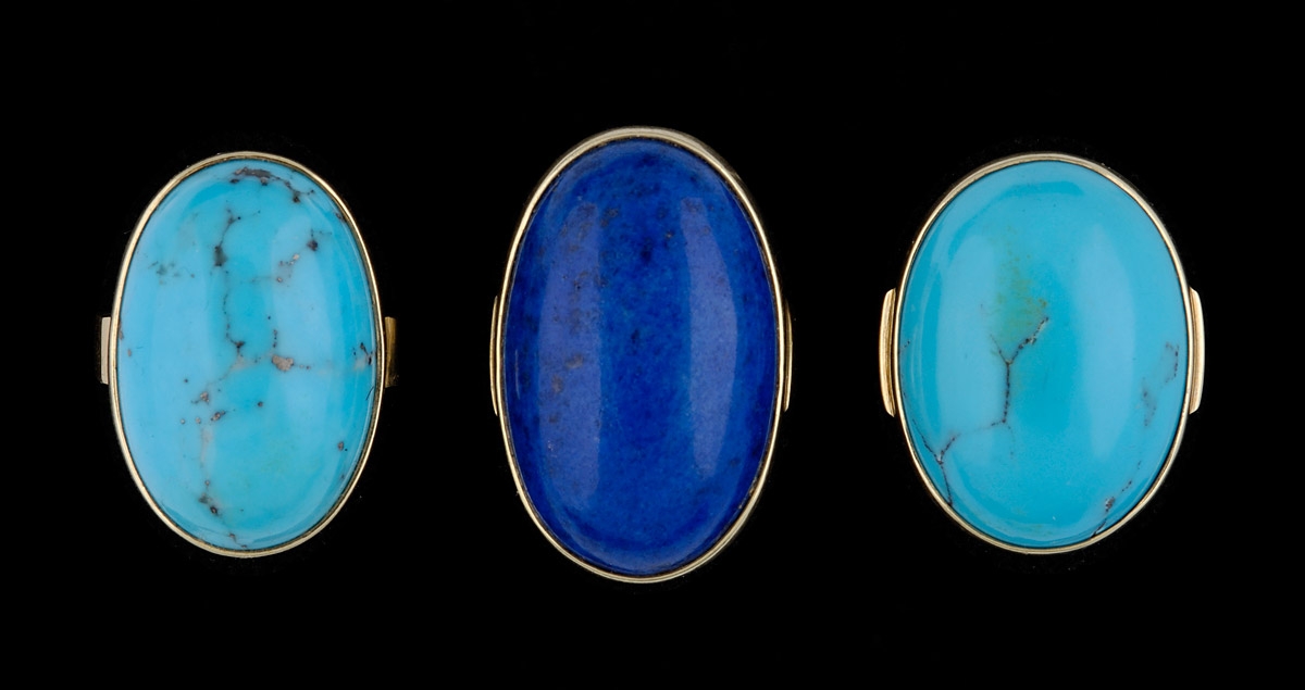 1488Ring, Perlenkette und Anhänger 750-/585-Gelbgold, Safire, Rubine, Smaragde und Brillanten.350 EUR |