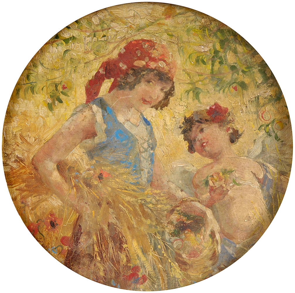 205Grassi, C. Italien um 1900 Zwei Gemälde. Allegorie des Winters. Allegorie des Sommers. Signiert. Öl/Malk., Ø je 24,5 cm 400 EUR |