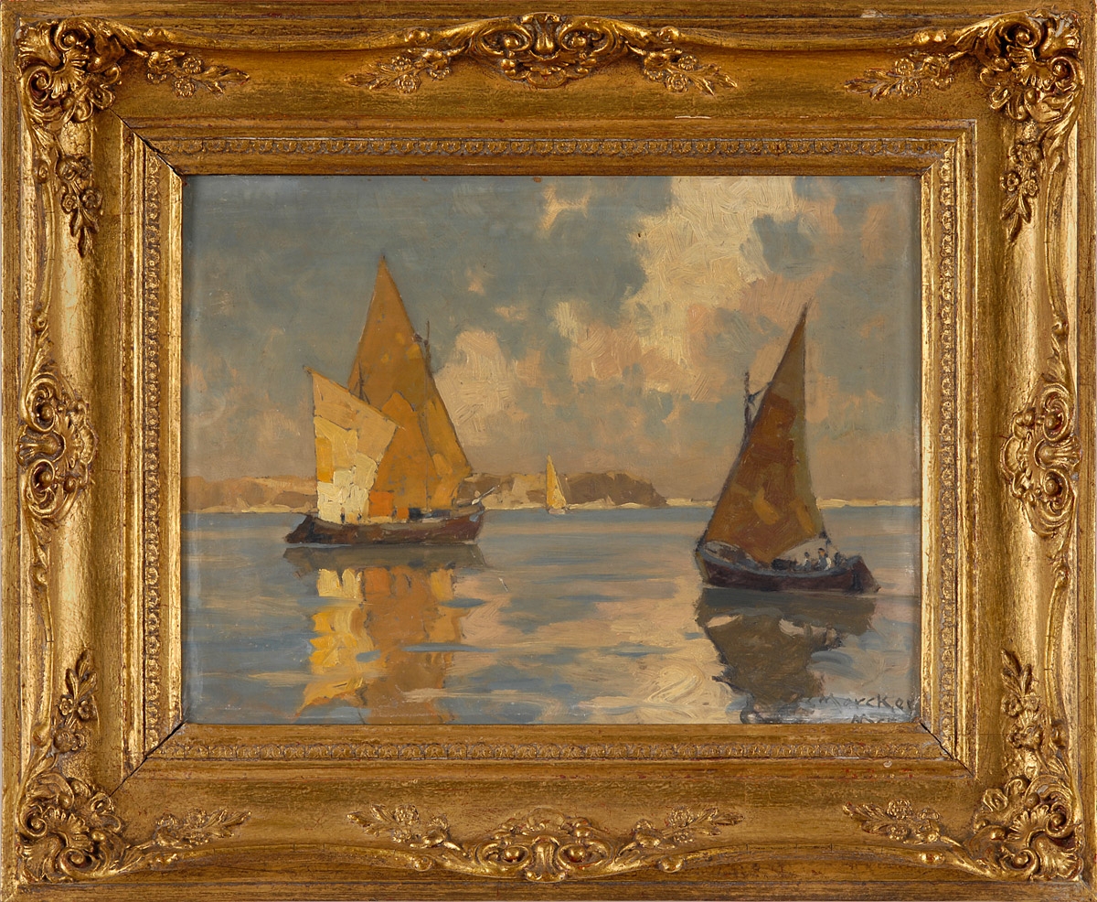 238Mercker, Erich 1891 Zabern (Elsaß) - 1973 München Ausfahrt zum Fang. Signiert. Öl/Platte, 30 x 40 cm 200 EUR |
