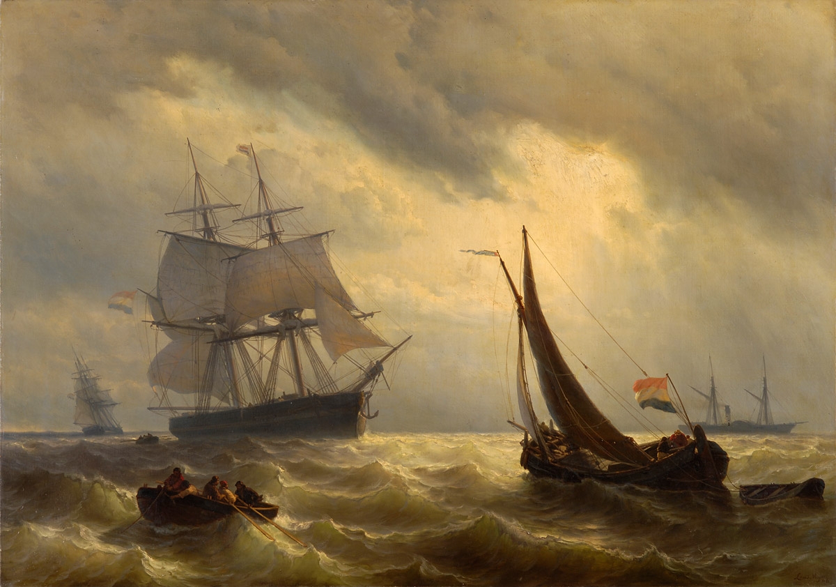 239Meyer, Louis Johan H. 1809 Amsterdam - 1866 Utrecht Fregatte und Fischerboote vor der Küste. Signiert. Datiert 1862. Öl/Lwd., 106 x 150 cm 9000 EUR |