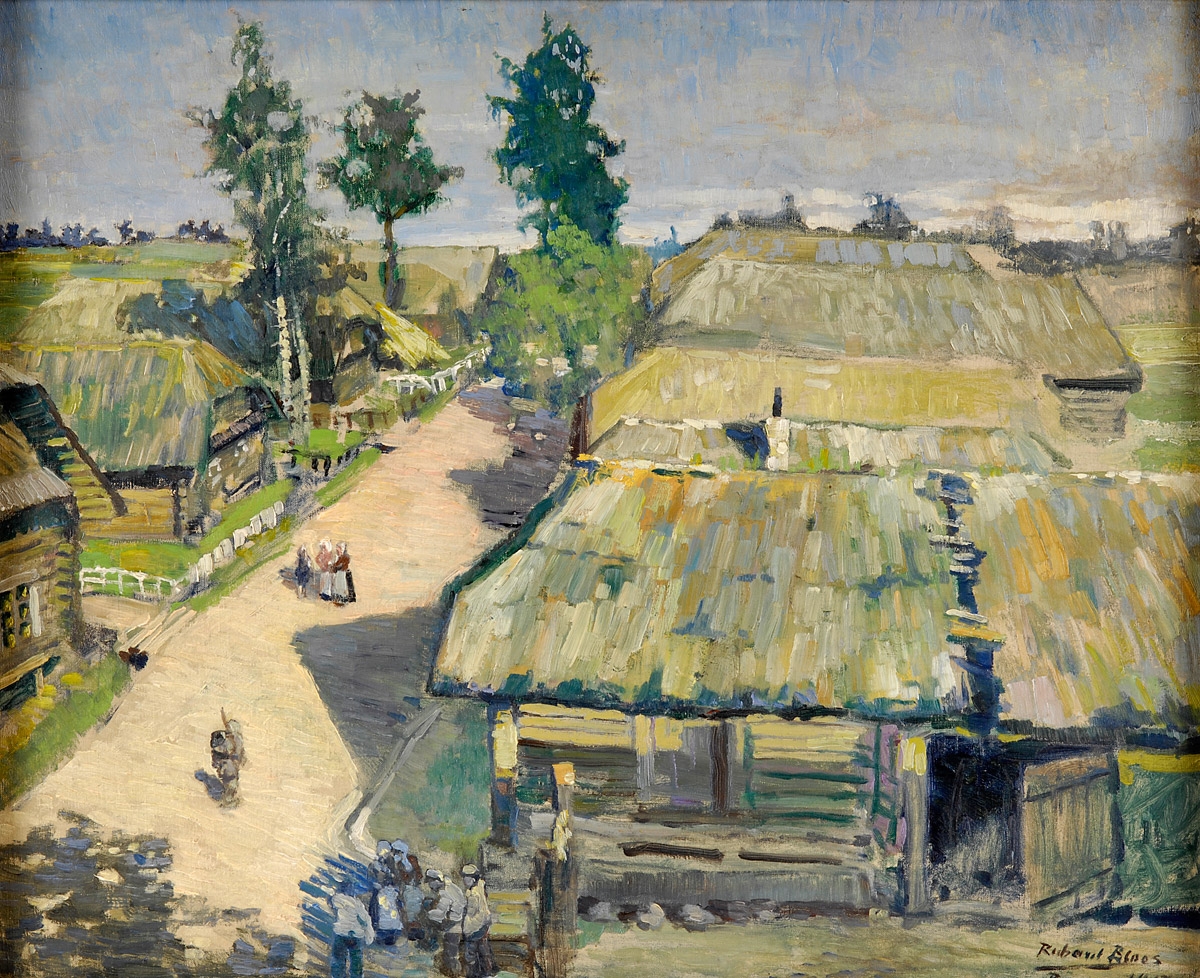 59Bloos, Richard 1878 Brühl - 1957 Düsseldorf Dorfansicht in Polen. Signiert. Datiert 1917. Öl/Lwd., 59 x 72 cm 300 EUR |