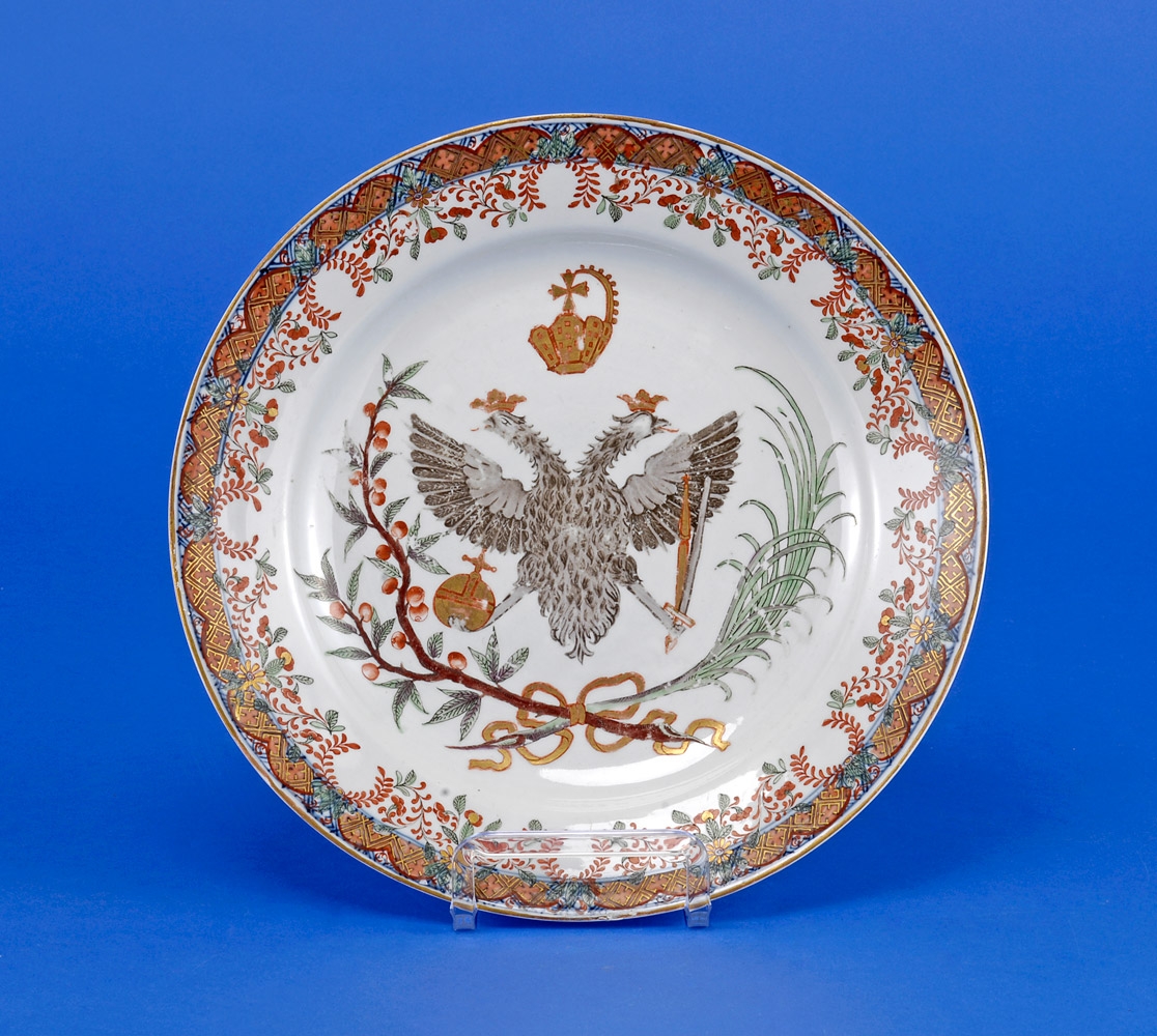 1219Teller mit russischem Doppeladler China 18. Jhdt. Aufglasurdekor und Vergoldung. Ø 30,5 cm 200 EUR |