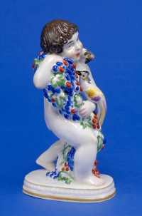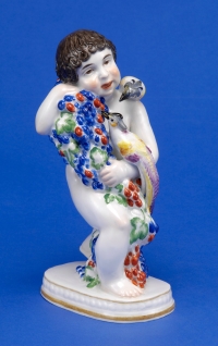 1201Bacchusknabe mit Paradiesvögeln Meissen, Anfang 20. Jhdt. Bunt staffiert. Sockel bez.: Oehler. Schwertermarke. Beizeichen. H 20 cm 200 EUR |