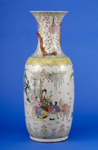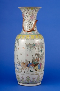 1214Vase China 19. Jhdt. Umlaufender Pfirsich- und Blütendekor in den Farben der famille rose. Sechszeichenmarke im Doppelkreis. H 54 cm 1200 EUR |