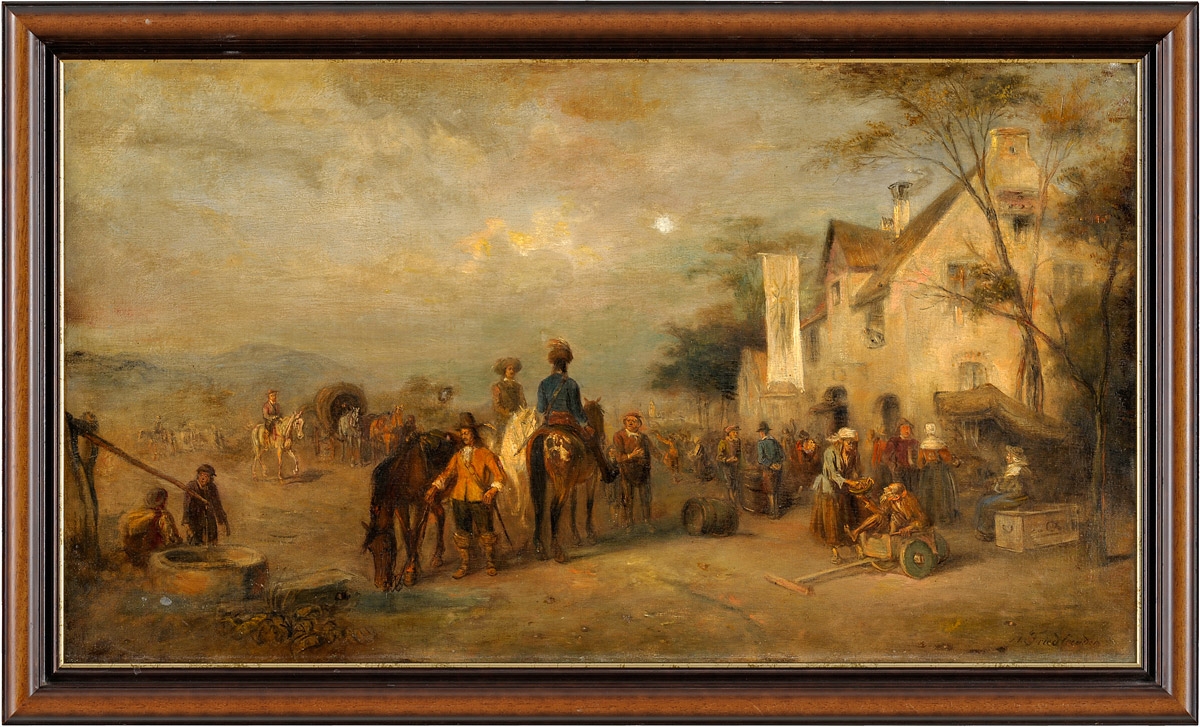33Friedlaender, Friedrich Ritter von Malheim 1825 Kohljanowitz - 1901 Wien Stadtszene des 17. Jhdt. mit regem Treiben. Signiert. Öl/Lwd., 46 x 82 cm 200 EUR |