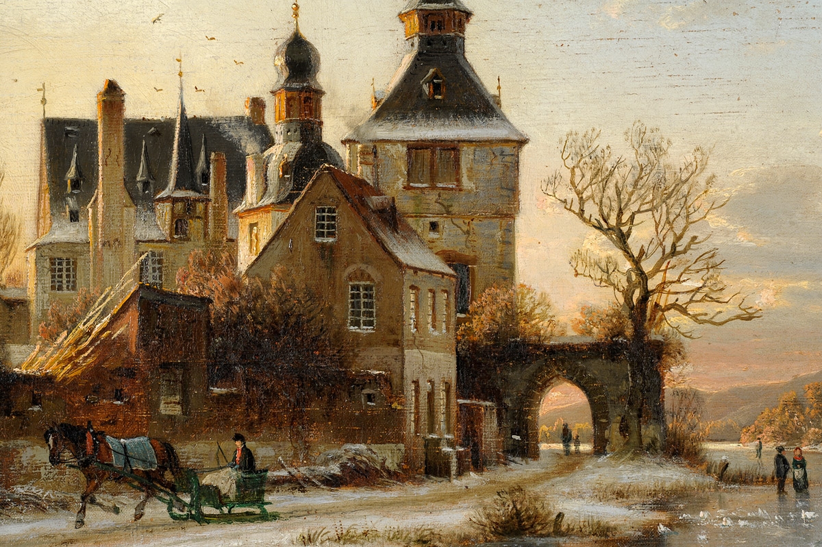 21Duntze, Johannes Bartholomäus 1823 Rablinghausen - 1895 Düsseldorf Winterliche Flusslandschaft mit Schlossansicht. Signiert. Datiert 1889. Öl/Lwd., 33 x 47,5 cm 600 EUR |