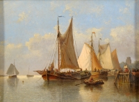 42Hambüchen, Wilhelm 1869 Düsseldorf - 1939 Düsseldorf Holländischer Hafen bei Ebbe. Signiert. Öl/Lwd., 40 x 50 cm 150 EUR |