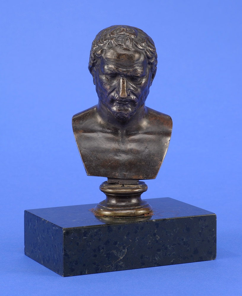1248Büste eines Herrn der Antike Italien 16. Jhdt. Bronze. Serpentinsteinsockel später. H 12,5 cm (ohne Sockel). 600 EUR |