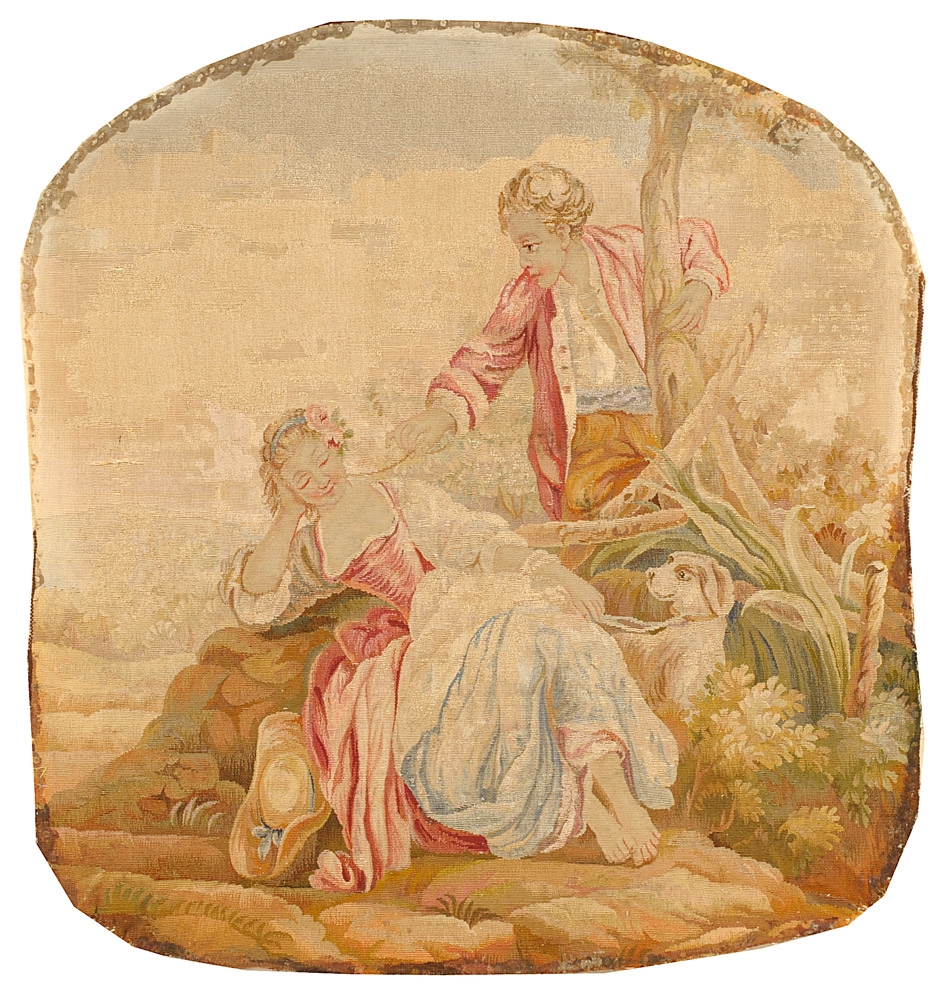 1415Tapisseriebezüge für zwei Fauteuils Aubusson 19. Jhdt. Seide und Wolle. Sitzfläche: 75 x 80 cm 100 EUR |