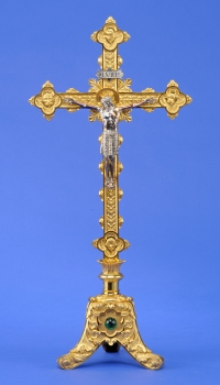 1464Corpus Christi Italien 17./18. Jhdt. Metall vergoldet. Auf Samtplatte montiert. H 29 cm bzw. 46 x 36 cm (gesamt) 150 EUR |