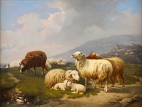 183Verboeckhoven, Eugène 1798/99 Comines-Warneton - 1881 Schaerbeek Weidelandschaft mit Schafen und Federvieh. Signiert. Datiert 1862. Öl/Mahagoni, 23,5 x 30,5 cm 1500 EUR |