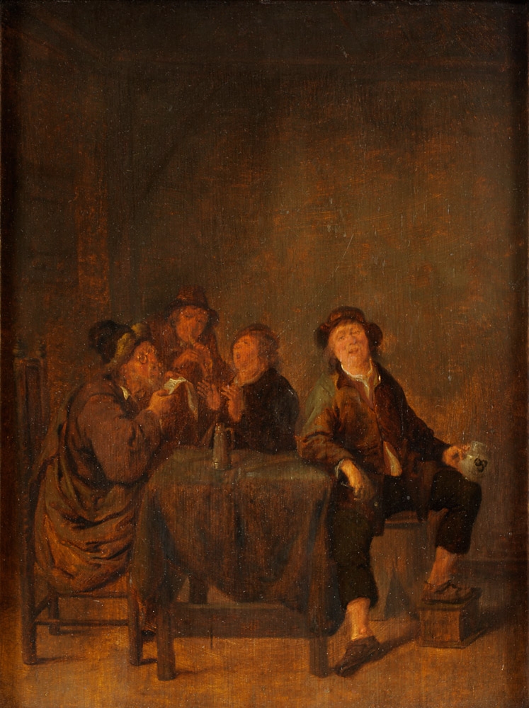 301Niederländischer Meister 17. Jhdt. Taverneninterieur mit singendem Landvolk. Öl/Holz, 35 x 26 cm 400 EUR |