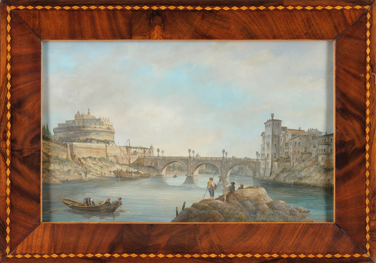 315Monogrammist D.M. 18./19. Jhdt. Zwei Gouachen. Rom Ansichten. Monogrammiert u. bez. Roma. Je 26 x 42 cm 2000 EUR |