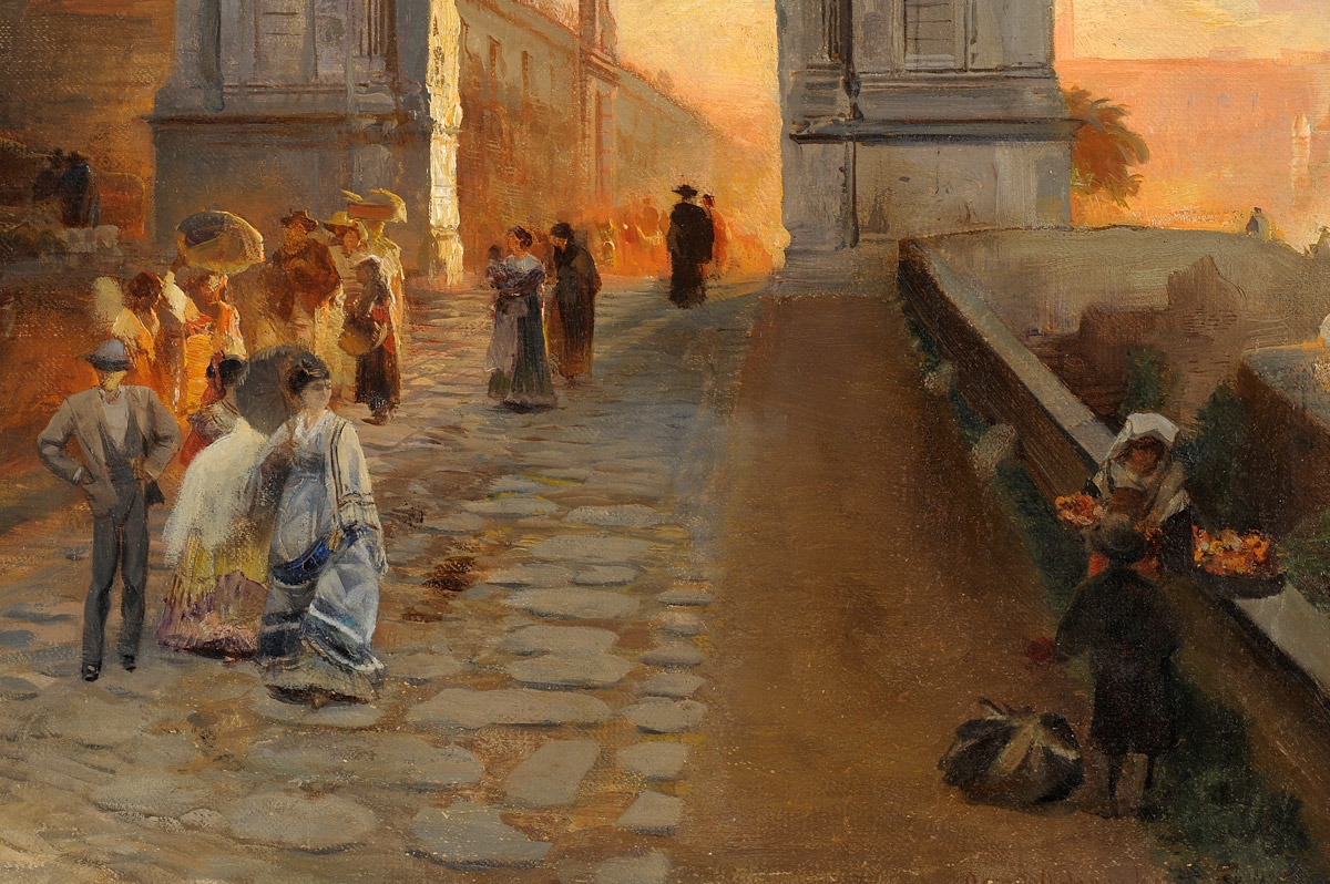 55Achenbach, Oswald 1827 Düsseldorf - 1905 Düsseldorf Der Titusbogen, Roma. Signiert. Datiert (18) 76. Öl/Lwd., 54 x 42,5 cm 6000 EUR |