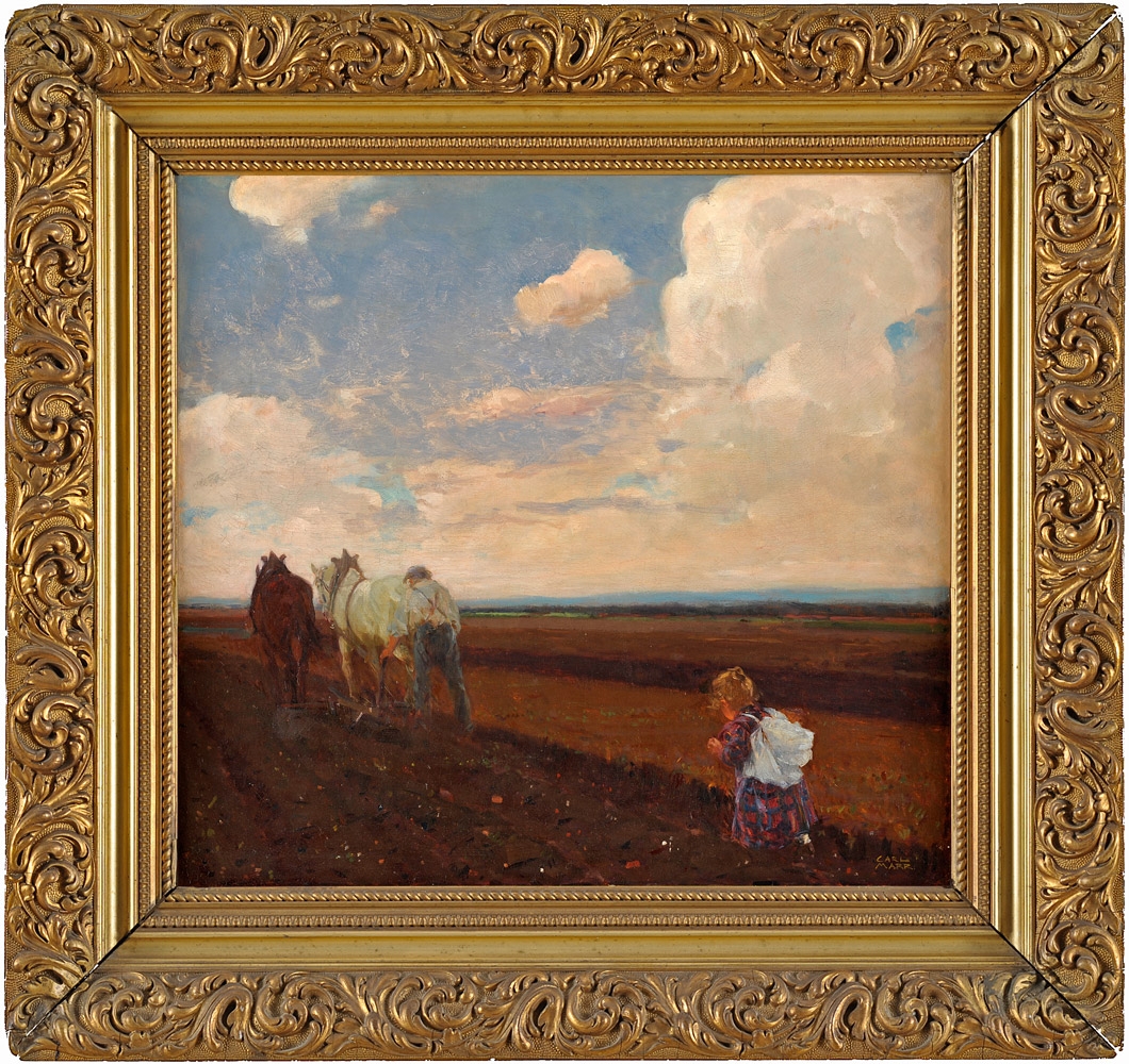 83Marr, Carl von 1858 Milwaukee - 1936 München Schwere Arbeit. Signiert. Öl/Lwd., 50 x 55 cm. Rückseite mit altem Ausstellungsetikett: Osterausstellung 1904. 500 EUR |