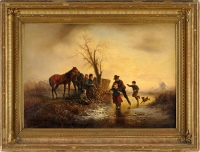 53Hilgers, Carl 1818 Düsseldorf - 1890 Düsseldorf Winterliches Eisvergnügen. Signiert. Datiert (18) 90. Öl/Lwd., 53 x 75 cm 4000 EUR |