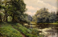 92Monsted, Peder Mork 1859 Grenaa - 1941 Fredensborg Seenlandschaft. Signiert. Datiert 1909. Öl/Malk., 30 x 46,5 cm 1200 EUR |