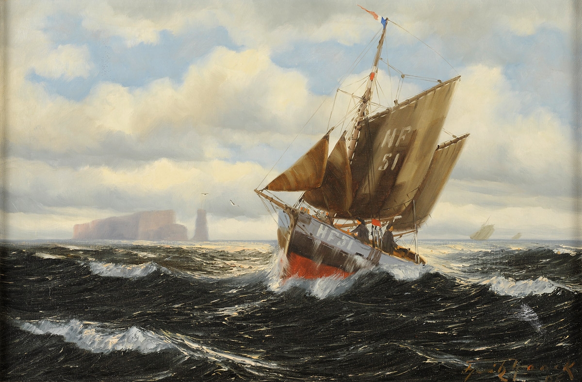 506Schultze, Robert 1828 Magdeburg - 1910 München Küstenszene mit Segelschiff. Signiert. Öl/Mahagoni, 16 x 30 cm 300 EUR |