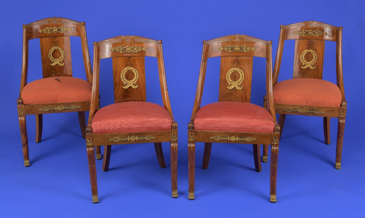 734Satz von vier Gondelstühlen Erste Hälfte 19. Jhdt. 300 EUR |