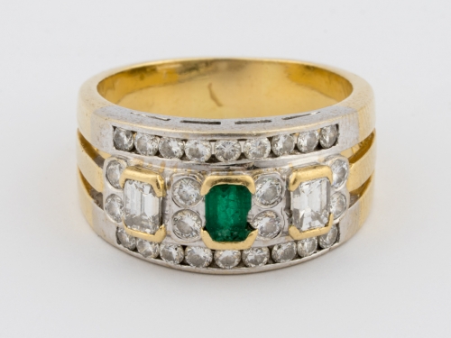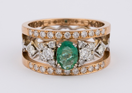 750-Gold, Smaragd und Brillanten.