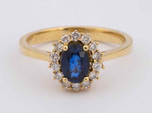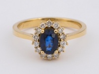 750-Gelbgold, Safir und Brillanten zus. ca. 0,70 ct.
