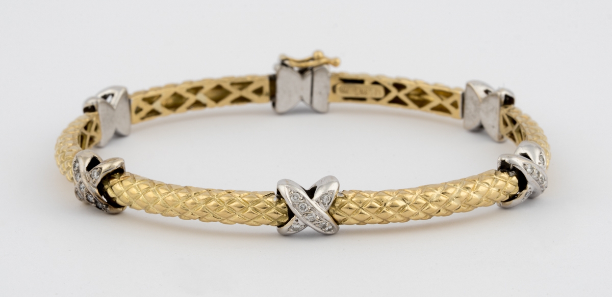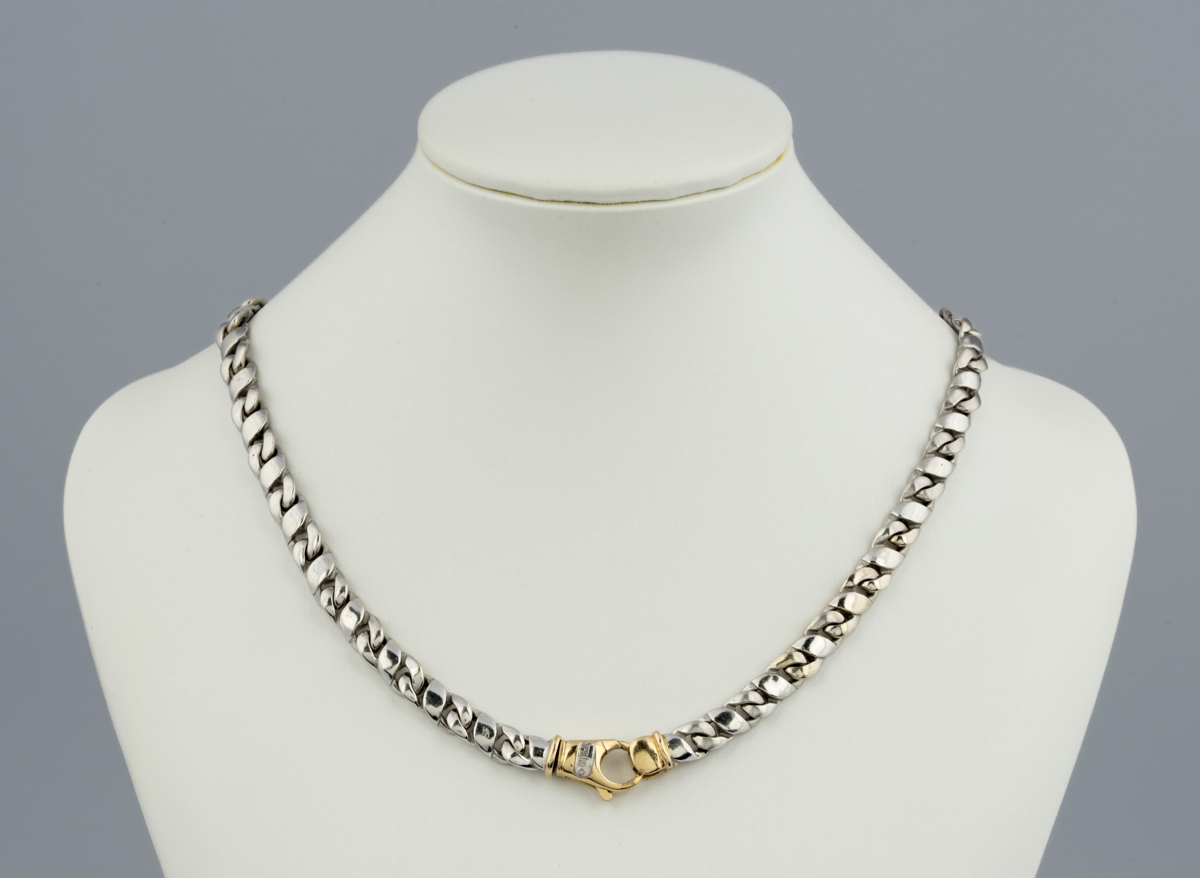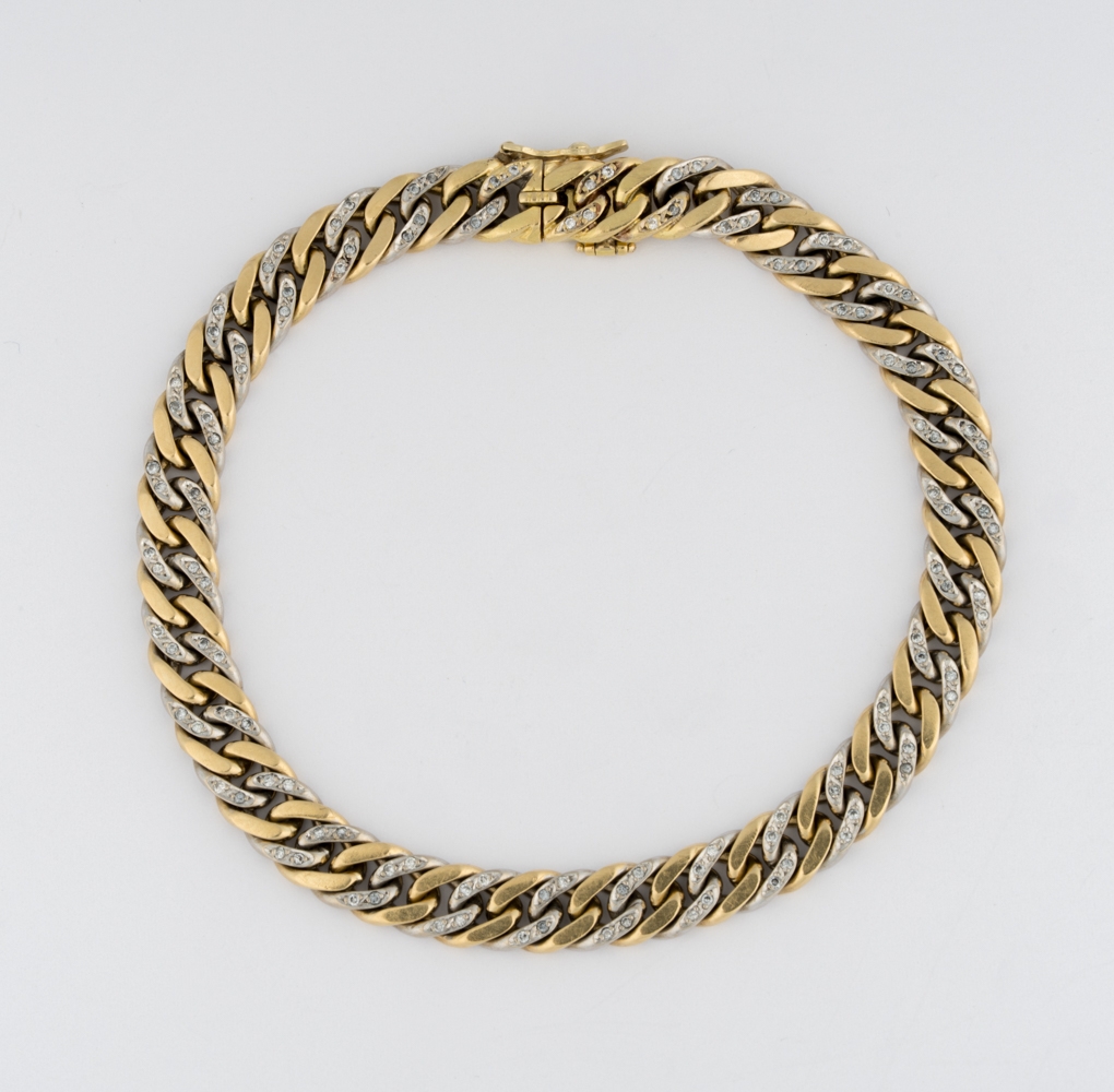 750-Gelb-/Weißgold, Diamantbesatz. L 22 cm, 34 g.