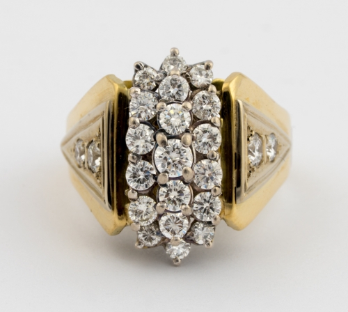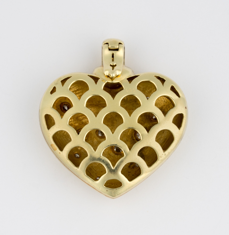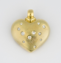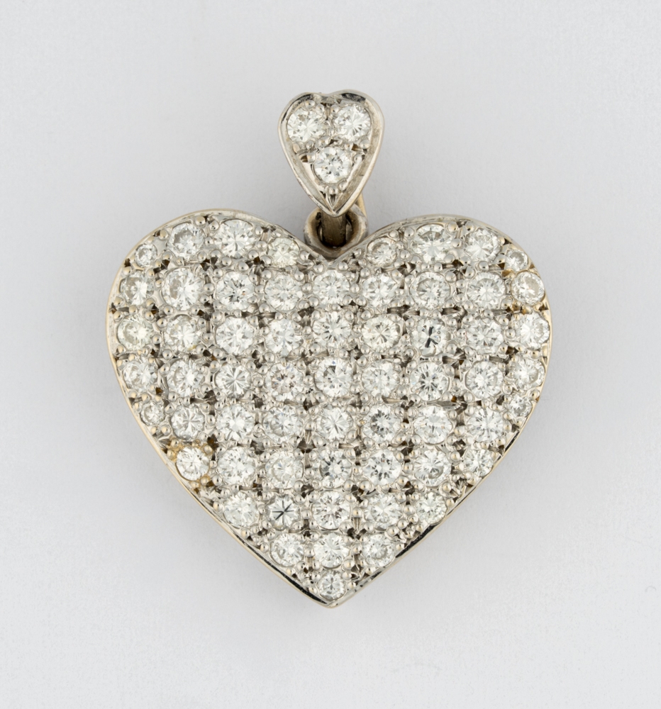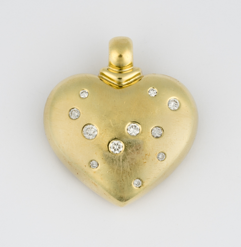 585-Gold, 11 Brillanten im oberen Farb- und Reinheitsbereich. 4,5 x 4 cm, 38,5 g.