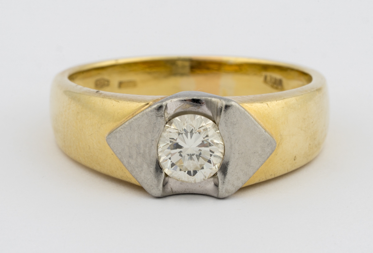 750-Gold, ein Brillant ca. 0,50 ct im oberen Farb- und Reinheitsbereich.