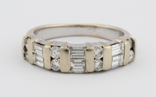 750-Gold, Brillanten und Diamant-Baguetten im oberen Farb- und Reinheitsbereich.