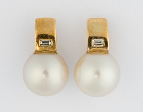 333-Gold, Brillanten und zwei Perlen.