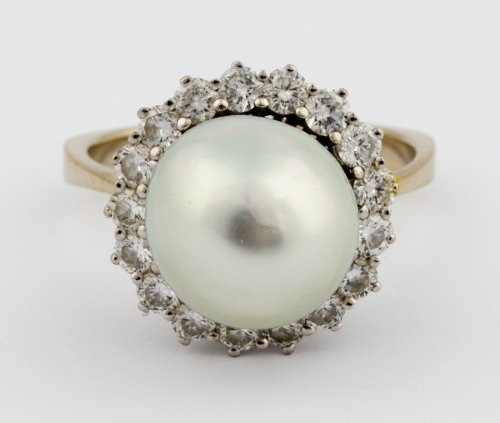 585-Gold, Diamanten und Perle.