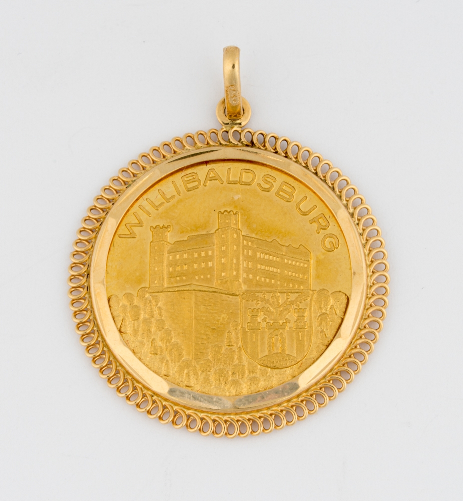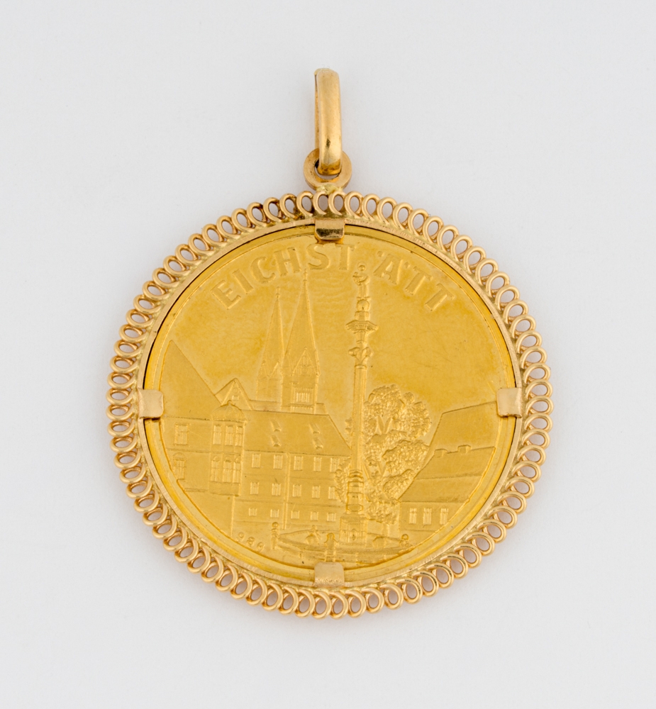 750-Goldfassung, Münze: 986-Gold zus. 11,5 g.