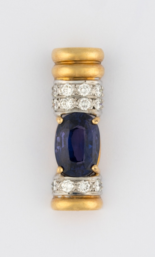 375-Gold, Safir und Brillanten.
