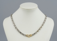 Silber-Magnetschließe, Goldzwischenstück mit 12 Brillanten zus. ca. 1,50 ct im oberen Farb- und Reinheitsbereich. L 43 cm.