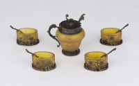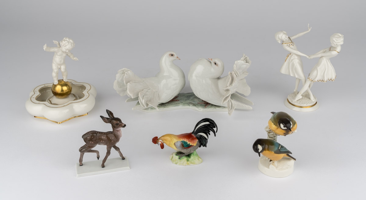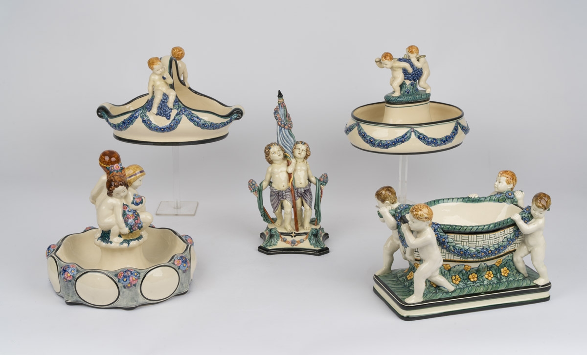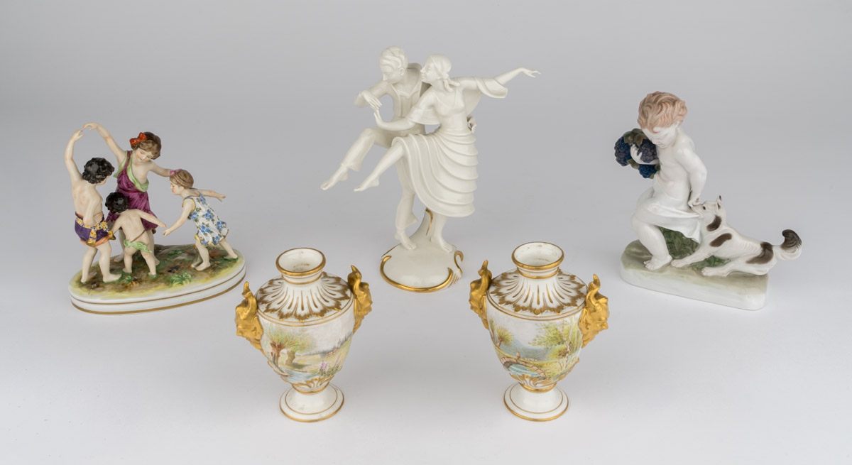 532Sammlung von vier Tafelaufsätzen und Figurengruppe Karlsruhe, Anfang 20. Jhdt. 250 EUR |