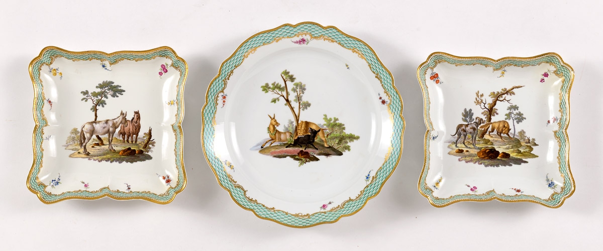 537Platte und zwei Schalen mit Fabelszenen nach La Fontaine Meissen um 1775 200 EUR |