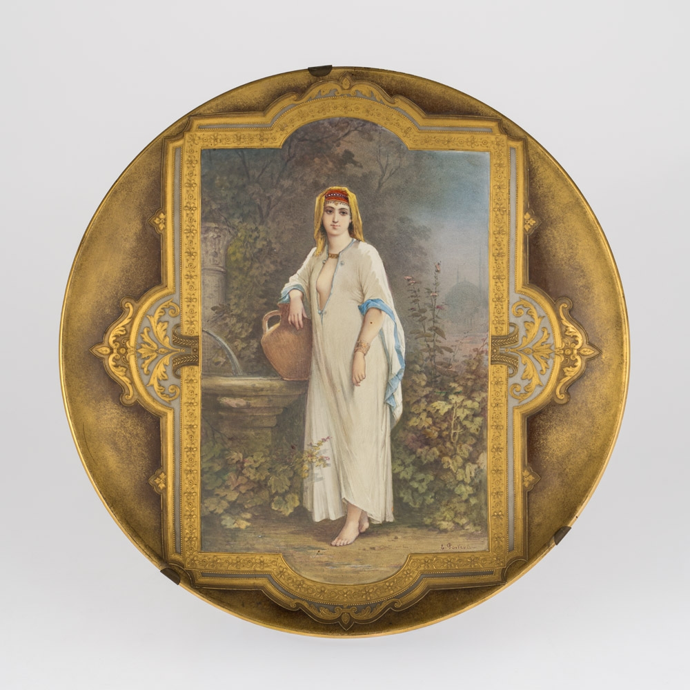 550Großer Teller mit Bemalung von Gorges-Emile Poitevin Ende 19. Jhdt. 150 EUR |