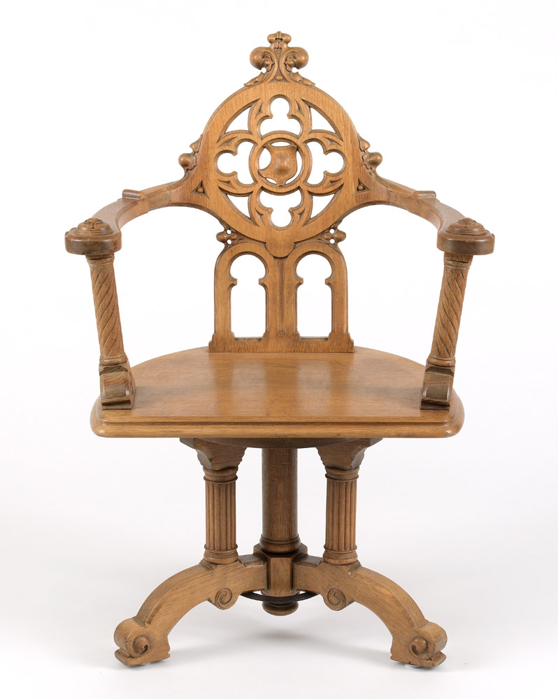 794Drehbarer Armlehnstuhl im neogotischen Stil Ende 19. Jhdt. 50 EUR |