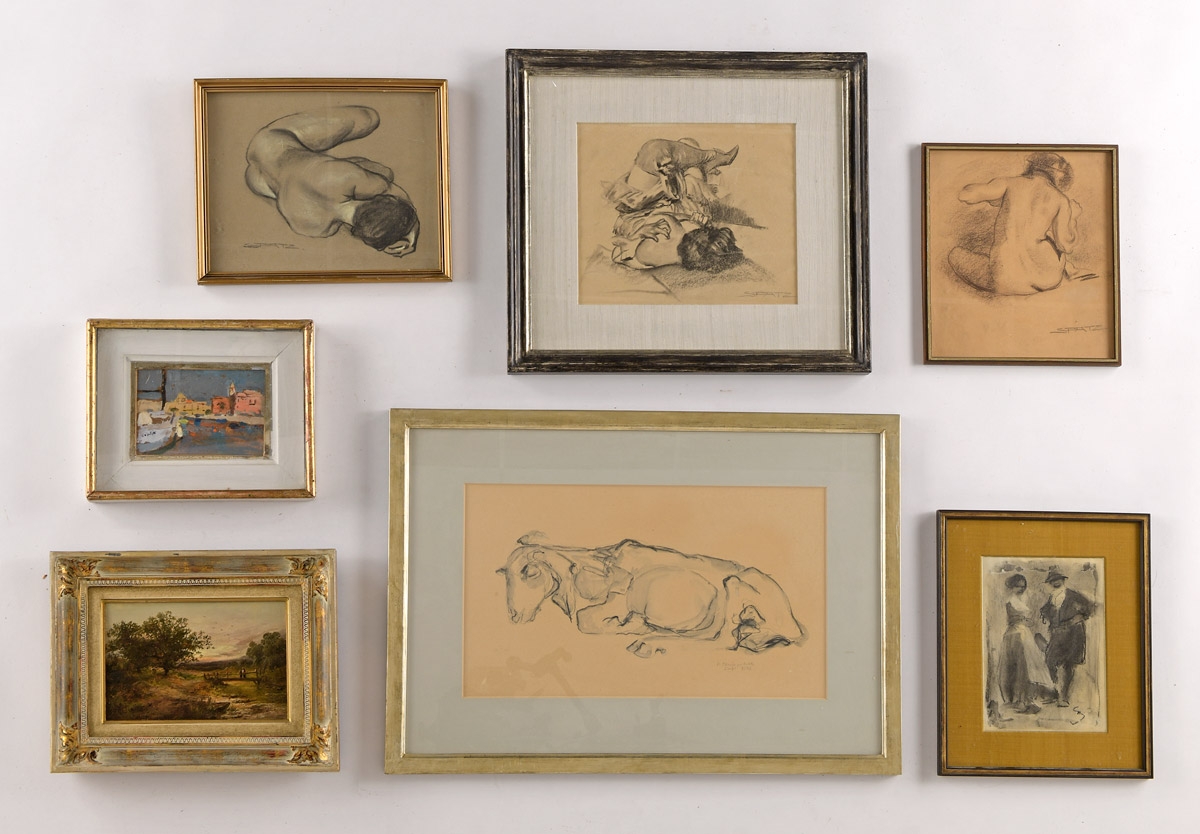 1434Zwei Gemälde und fünf Zeichnungen 80 EUR |