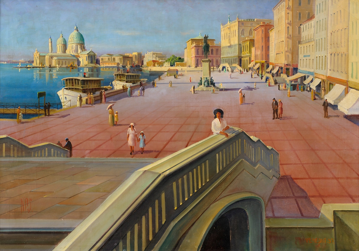 509Meyerheim, Hermann 1815 Danzig - 1880 Berlin Auf der Mottlau in Danzig. Signiert. Öl/Lwd., 58 x 51 cm. Literatur: Boetticher, Band II, S. 47, Nr. 7. 2000 EUR |