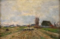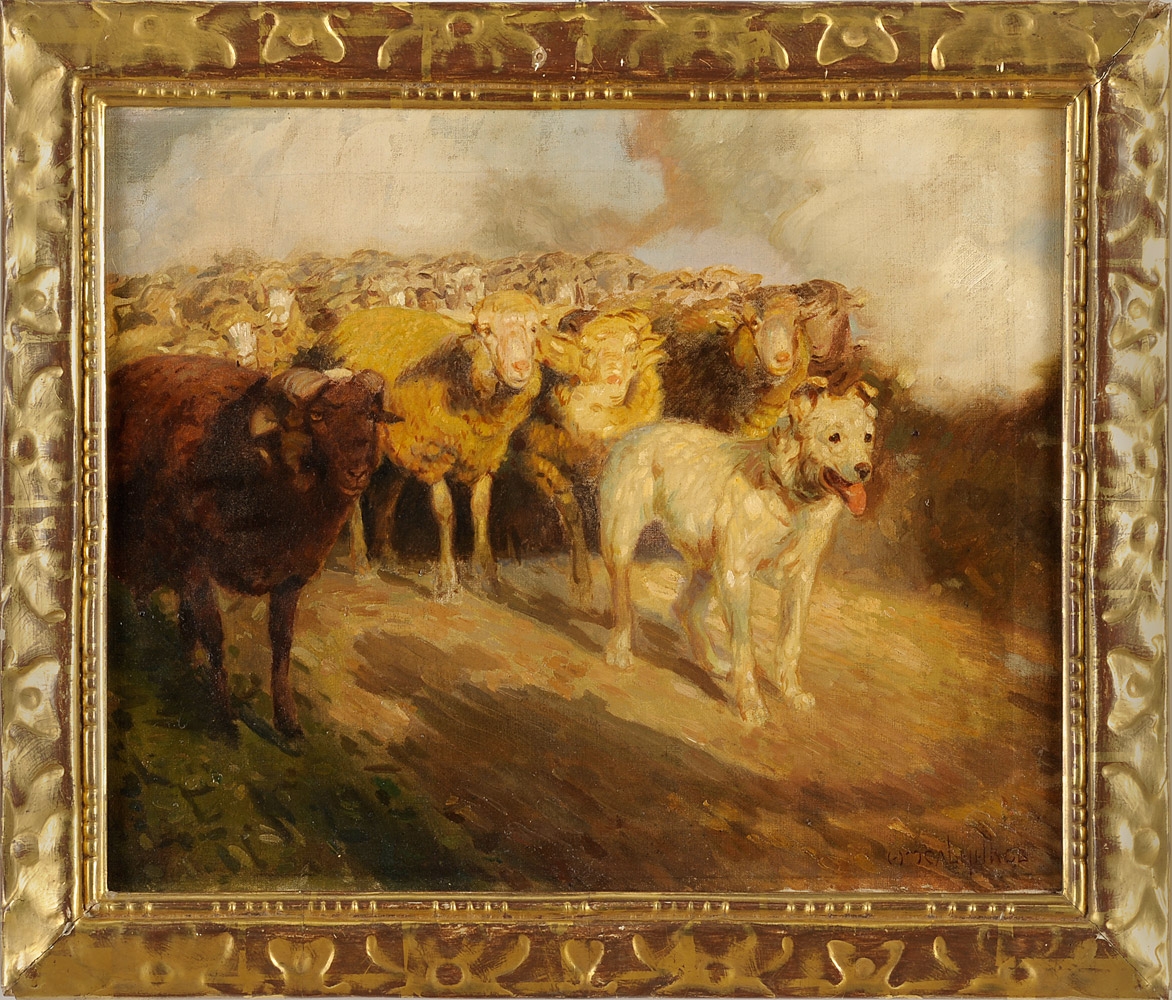 516Liesegang, Helmuth 1858 Duisburg - 1945 Leipzig Dorfstraße mit Schafherde. Signiert. Öl/Malk., 25,5 x 38,5 cm 200 EUR |