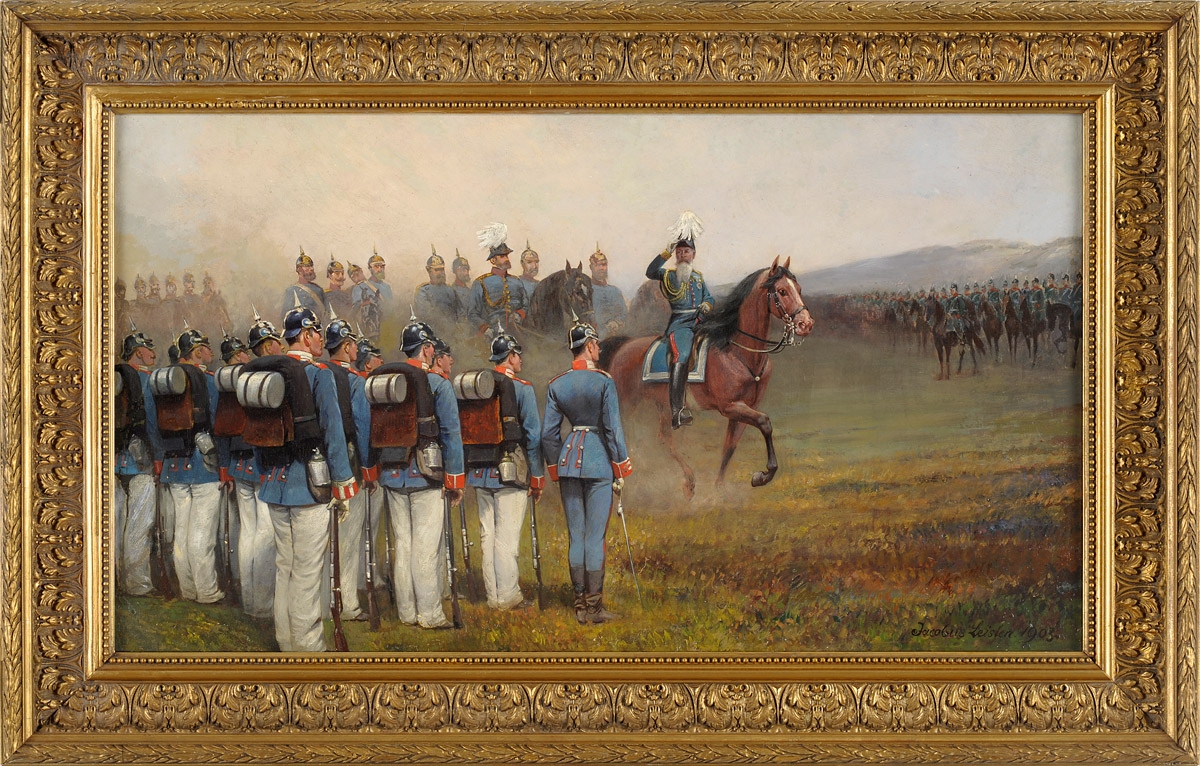511Leisten, Jacobus 1844 Düsseldorf - 1918 Düsseldorf Militärparade. Signiert. Datiert 1903. Öl/Lwd., 45 x 78 cm 1200 EUR |