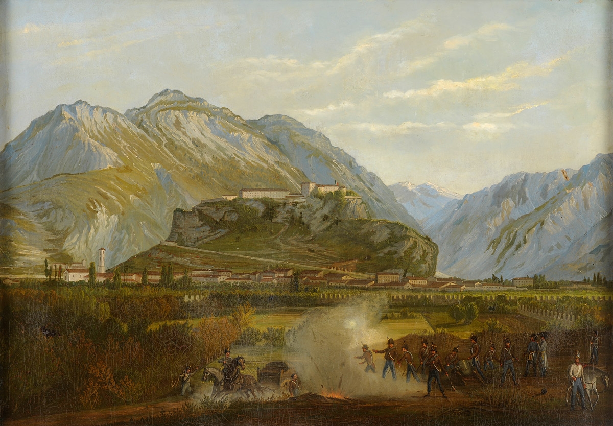 542Österreichischer Meister Erste Hälfte 19. Jhdt. Soldatenlager vor Salzburg. Öl/Lwd., 65 x 92 cm 300 EUR |
