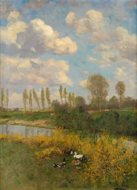 539Monogrammist J.B. Datiert 1876 Sommerliche Flusslandschaft mit regem Treiben. Öl/Lwd., 42 x 69 cm 300 EUR |