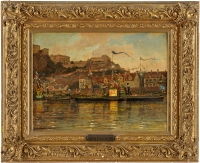 502Larson, Marcus 1825 Atvidaberg - 1864 London Skandinavischer Hafen mit auslaufender Fregatte. Signiert. Datiert 1861. Öl/Lwd., 98 x 135 cm 600 EUR |